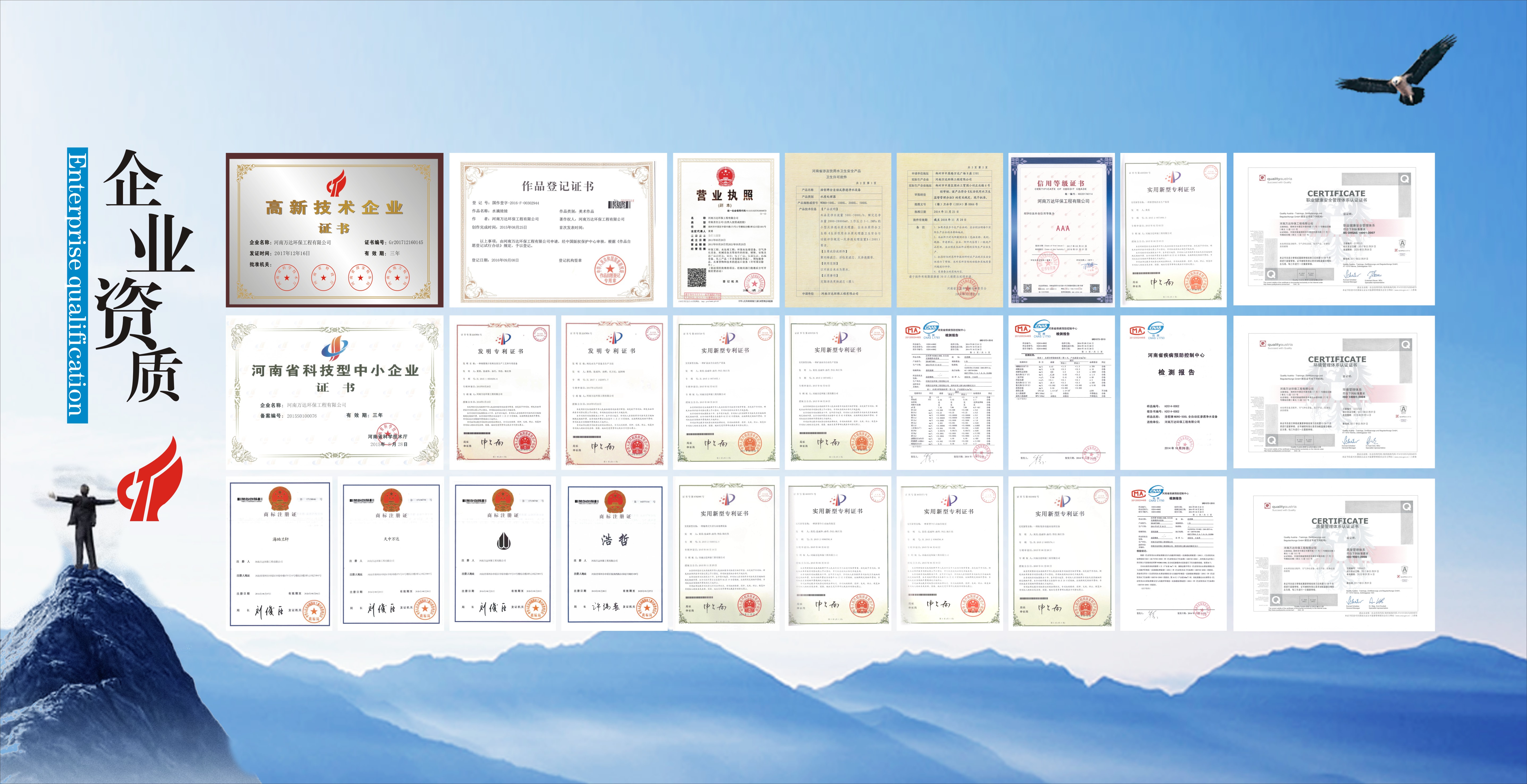 河南万达环保工程有限公司已通过国家高新技术企业认证,公司拥有3000m2标准化现代生产厂房,软硬件设施齐全,研发设计实力雄厚,拥有15年专业技术的工程师组成的研发团队,技术过硬;专注高端水处理系统解决方案,成功案例20000+ ;专注纯净水设备和桶装水灌装生产线制造;公司拥有自主知识产权,30多项产品专利技术,由15年技术经验的工程师组成产品设计研发团队;精选业内知名厂家零部件供应商,产品模块化生产,配件耗材故障后维修更换更简单、效率更高;库存充足,15秒内故障响应,10分钟故障诊断,30分钟内出具维修方案,延长质保期,设立长期用户售后档案,售后无忧。